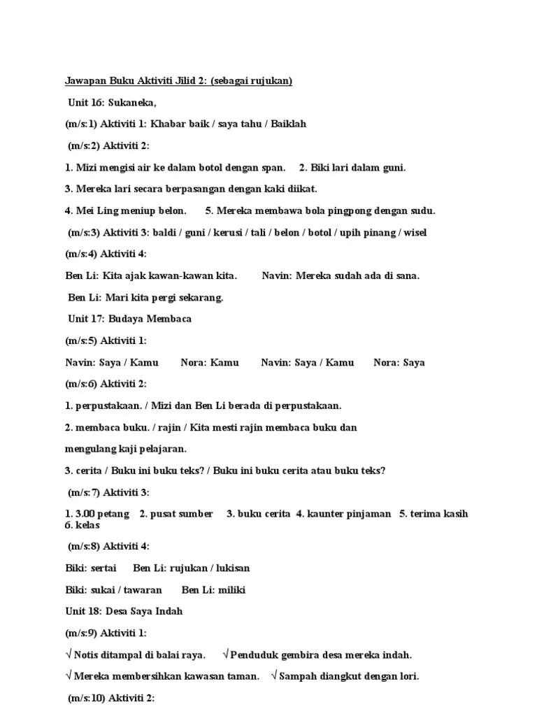 Jawapan buku aktiviti bm tahun 1 jilid 2 pdf.